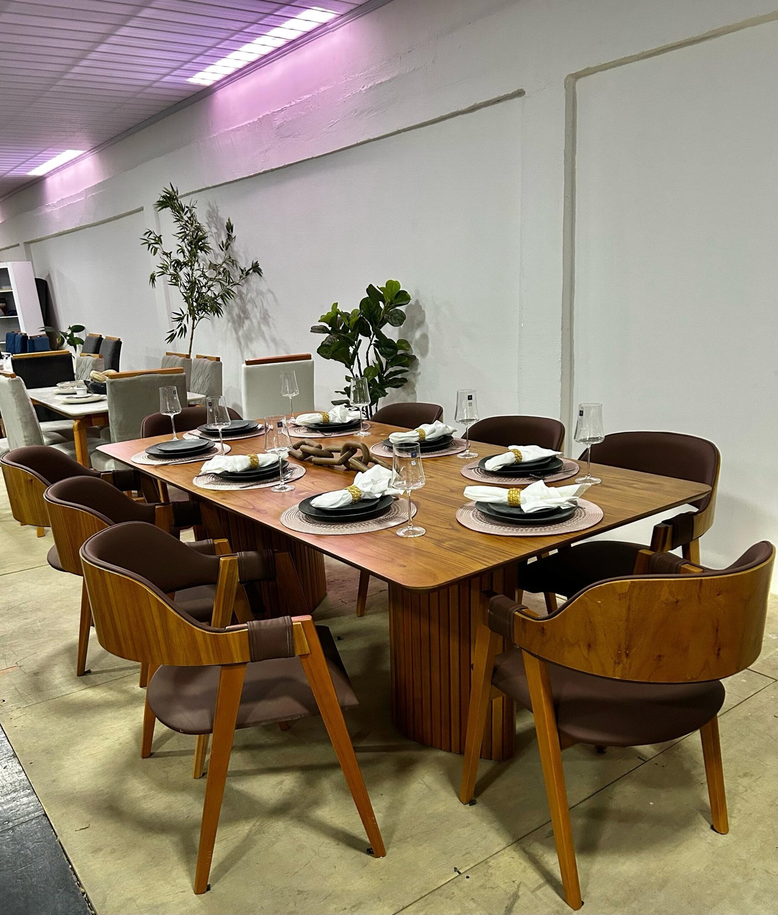 mesa frança com 8 cadeiras tampo organico de madeira 2,20 x 1,10
