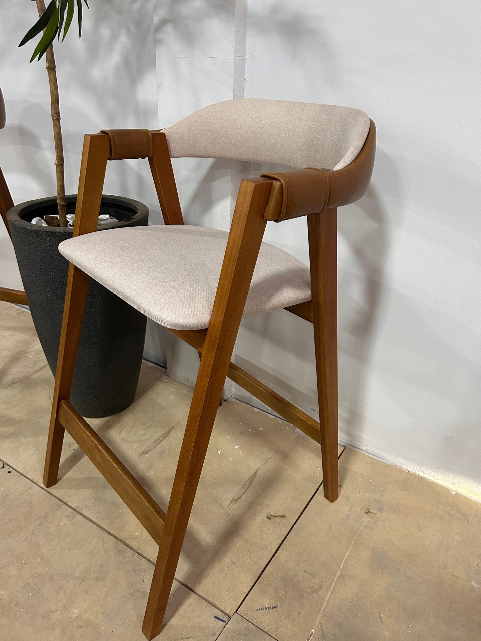 nas costas de tecido courano estrutura de madeira